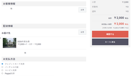 銀行振込、コンビニ決済、PayPal決済に関しては、別途メールが送られます。 - 個々の決済情報は、事務センター・辛夷会には開示・保存されません。