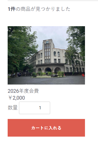 年会費決済ページでは、「2026年度会費」のチケットが表示されます。「カートに入れる」をクリックします。